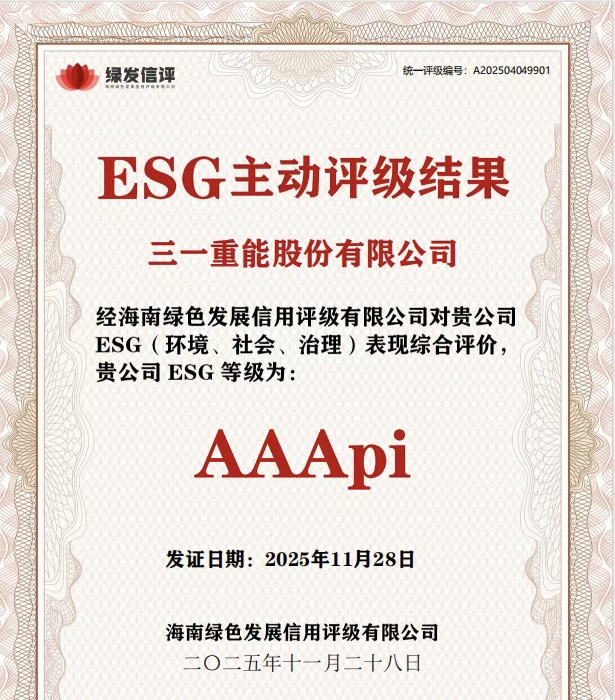 近日,绿发信评正式发布覆盖5393家上市公司的ESG主动评级结果,三一重能成功跻身AAApi评级。数据显示,AAApi评级企业存在稀缺性,获得该评级的企业比例不超过1%,意味着企业需在环境、社会和治理三大维度均达到行业顶尖水平,才能跻身这一阵营,成为资本市场与行业层面识别优质企业的重要参考。