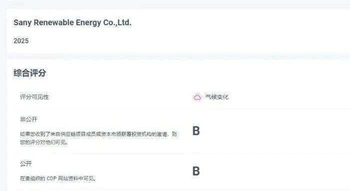 近日,全球环境信息研究中心(Carbon Disclosure Project,CDP)公布了2025年度全球企业环境信息问卷评级结果,三一重能凭借在气候变化应对领域的系统性实践与成效,斩获B级(管理级)评分。