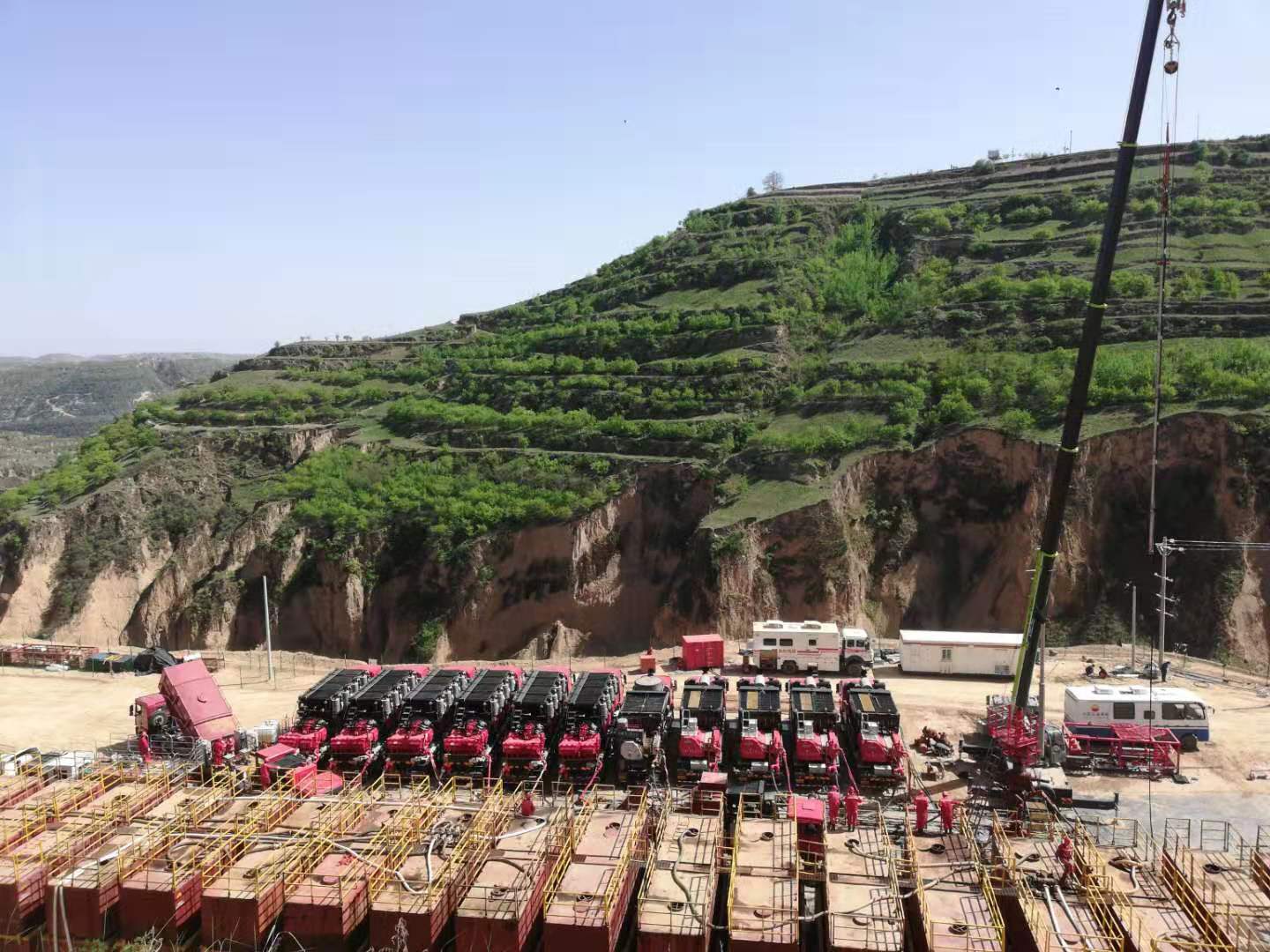 三一石油 2000 型压裂车组在低温环境及恶劣工况下未出现故障,历时 18 天,提前完成大井位水平井作业。施工期间,砂量输出 400 方,液量 6000 方,排量 6 方,压力 25 ~ 55Mpa,完全满足现场施工技术要求。